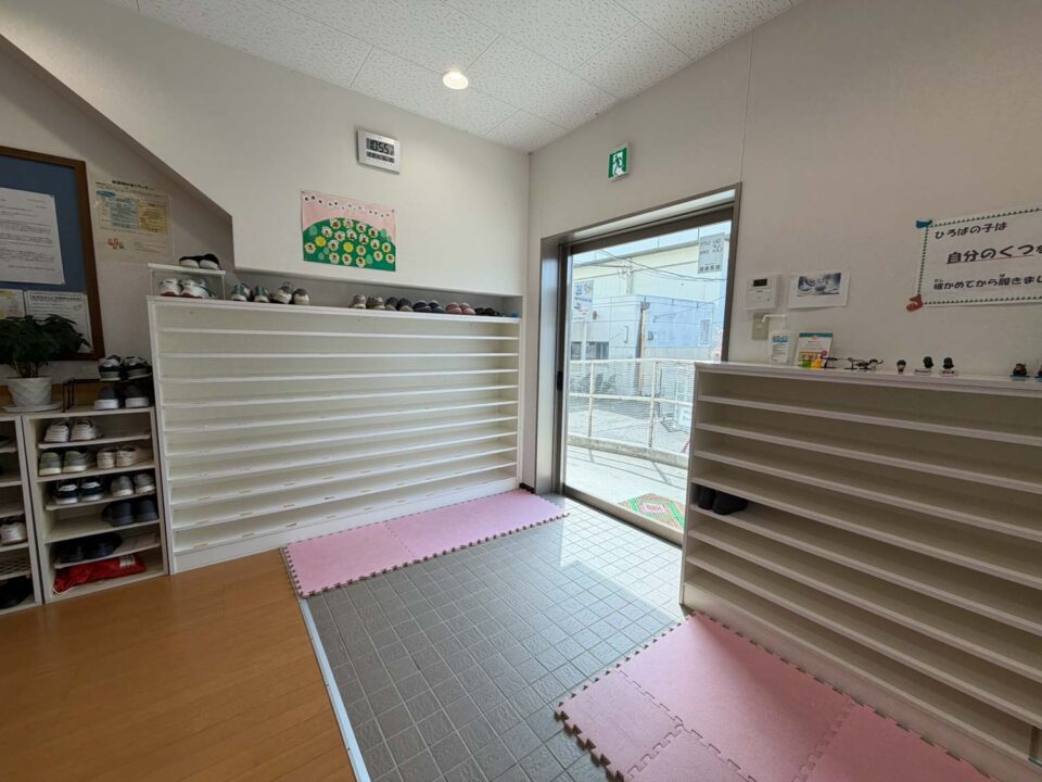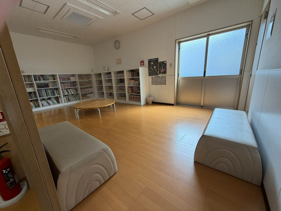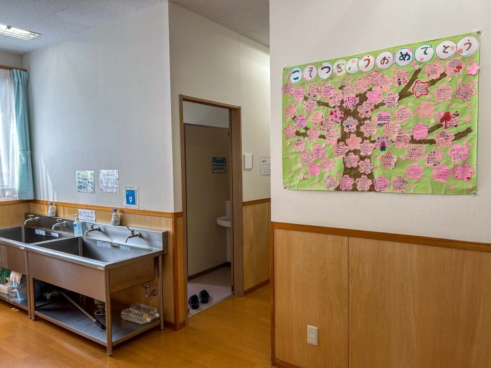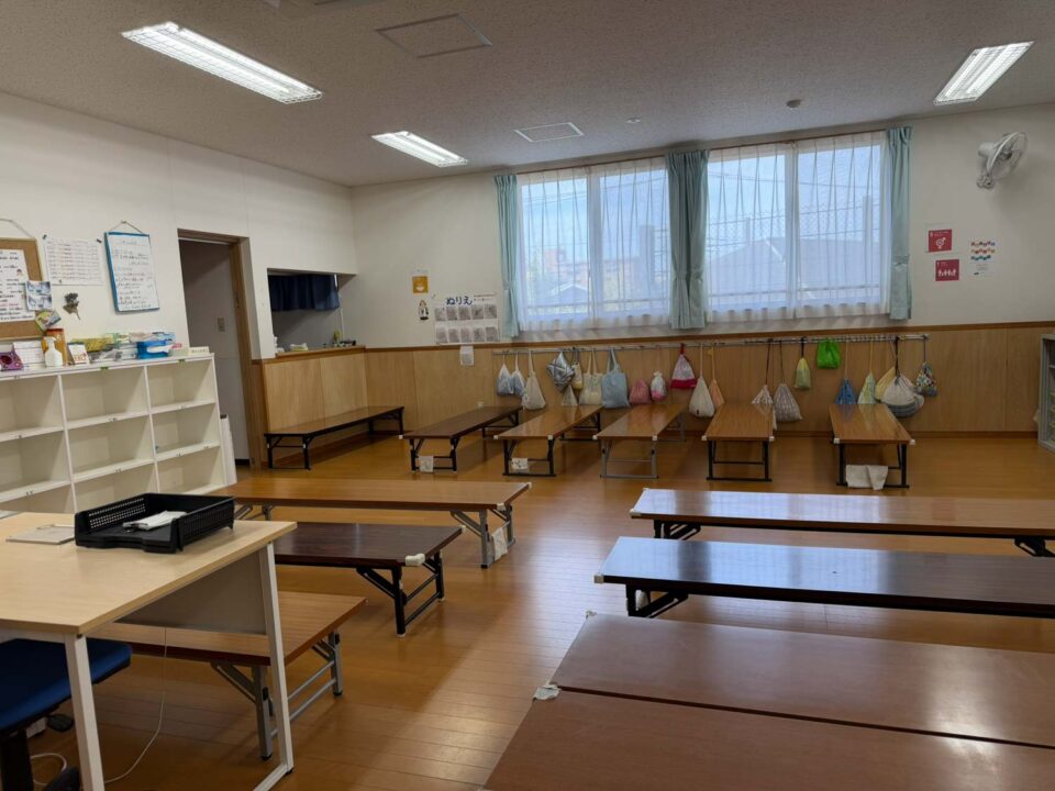 2018年新築。学校裏山を背負っているが意外と明るい。子ども室が二部屋あり、全体に広々としたつくり。通用門から直接学校と行き来できる。