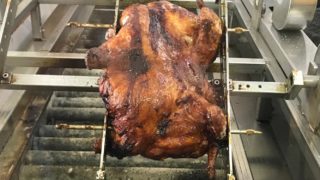 鳥肉一羽、丸ごとをぐるぐる回しながら炭火で焼き上げる「フリフリチキン」。丸ごと食べるのも、手で割いてご飯の上に乗っけて食べるDONもある。そんなダイナミックなハワイアンフードを出す「KAHANA’S」は、なんと、鎌倉青果市場の駐車場にお店がある。