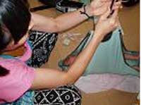 ← 携帯用の秤での赤ちゃんの身長・体重の計測