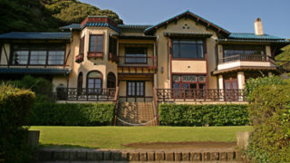 江ノ電由比ガ浜駅から10分、落ち着いたたたずまいの住宅地の中に、鎌倉ゆかりの文人たちの資料を集めた鎌倉文学館があります。もとは加賀百万石の藩主・前田侯爵家の別邸だった由緒ある西洋館。高台に建てられ、ベランダからは美しい庭の向こうに海が一望できます。文士たちを時代ごとに紹介する常設展のほか、夏休み期間などは子ども向けの特別展が開催される場合もあります。庭のバラ園は開花時はお見事!
