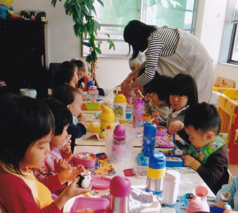 お昼はおうちの方が作ったお弁当。お行儀よく食べられるかな?