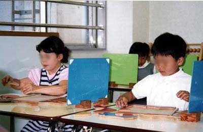 真剣な顔つきでパズルに集中するお受験コースの子たち。