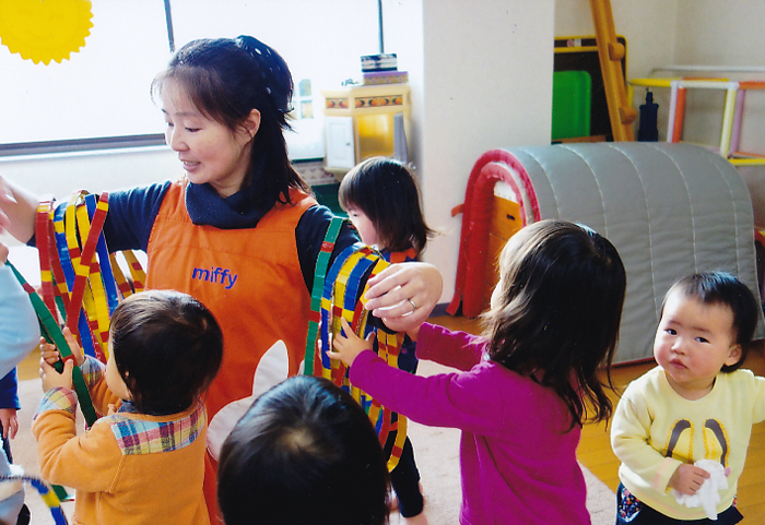 ―「もうひとつの柱、キッズ・プレイルームでは、週1日〜5日お子さんをお預かりしています。離乳が終わった1歳半ぐらいのお子さんから就園前まで、ご家庭の事情やお子さんの成長にあわせて、保育時間をお選びいただけます。今までの半日保育に加えて、2011年からは保育園の待機園児向けの一日保育のクラスも始めます。これにより、今まで以上にお子さんにあった保育時間や日にちをお選びいただけます。」