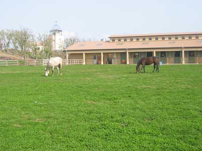 まきばのエリア。ウマ・ロバ・ヤギ・ヒツジ・ミニブタ・ウサギなどがいる。動物のえさは100円、乗馬体験は700円〜。