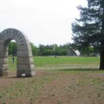 浅くて大きな「睡蓮の池」、今はスイレンはない。カメがいて水音がすると餌と思って寄ってくる。水面ぎりぎりに降りられるようになっているので、足を踏み外さないように注意!