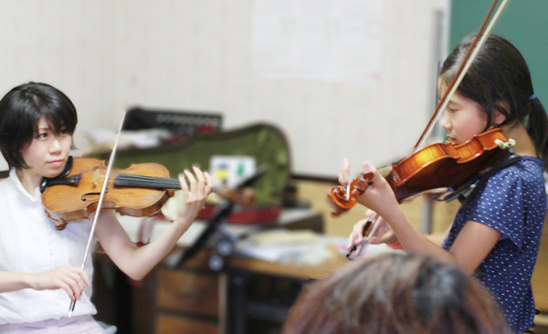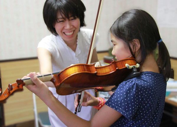 スズキ・メソードでは個人レッスンに加えて月に一度のグループレッスンもあり、各先生の生徒さんが複数で習います。また、年に1度ぐらい合同演奏会もあります。こうしたこともお互いの刺激として、音楽を続ける上での助けになっているようです。