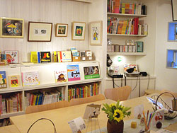 こじんまりした店内の壁際には、絵本がきれいに並んでいます。