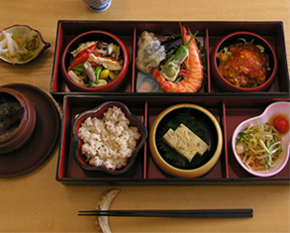 凛林2昼は凛林昼御膳(右写真) 2625円〜、お祝いの席は4200円〜。