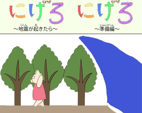 で、防災アニメ「にげろ〜地震が起きたら〜」「にげろ〜準備編〜」DVDバージョンが完成。DVDは学校や幼稚園保育園にも配布を予定しています。