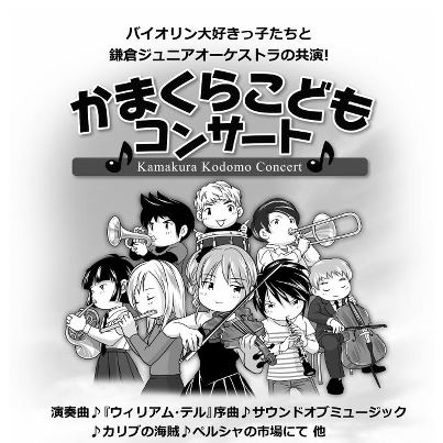 3月23日土曜日、鎌倉芸術館小ホールにおいて、鎌倉市教育委員会主催の『かまくらこどもコンサート』に鎌倉ジュニアオーケストラ(KJO)が出演します。「KJOといっしょにオケ体験をしよう!」という呼び掛けに応じたジュニアバイオリニストたちとの共演です。鎌倉近郊在住・在学のバイオリン経験者たちがこの日のために去年9月より特別レッスンを受けました。