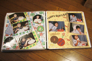 アルバム作りのワークショップは「スクラップブッキング」とよばれます。この名前に新聞の切り貼りノートを思い出して、おや?と感じますが、写真を整理して切り抜いたり、きれいな紙で飾りコメントをつけて台紙に張ってアルバムを作ることでも、切り貼りして保存する様子からアメリカではこう呼んでいるようです。
