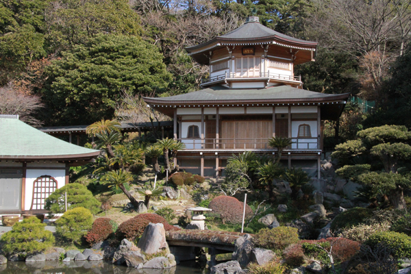 鎌倉材木座海岸近く、1243年に建立された浄土宗の大本山です。最初の門をくぐると、広大な駐車場の先に海を見下ろす山門が見えます。折々に一般公開(有料)されますが、家々の屋根の先に海が見える眺望はお見事!です。さらに先の本堂は元禄11年築、木造の建築物として鎌倉でも屈指の規模。南側には枯山水も配置され、小堀遠州作と伝えられる池のある見事な庭園とそれをめぐる回廊もあります。さくらの季節や庭池にハスの花が咲くころにはこの寺院の建物との見事な調和が心に残る荘厳さです。