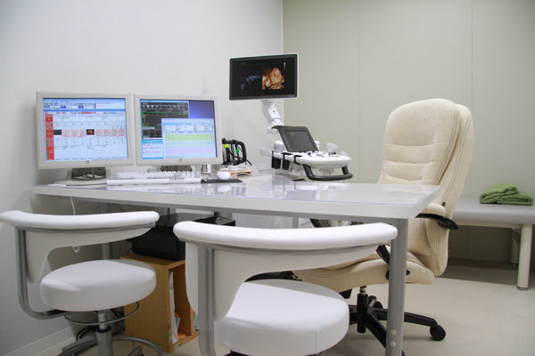 矢内原医院のコンセプトである満足できるお産とスモールラグジュアリーは、ハード、ソフト両面に反映されています。一階にある待合室は、ゆったりとした空間と中庭に広がる水盤にうっかり医療機関に来ていることを忘れてしまいそうです。診察室は清潔で明るくゆったりしたつくりで、カップルでの受診も可能です。もちろん4D画像の設備もあります。上のお子さんをお連れの方用に、奥にはキッズルームも完備されています。