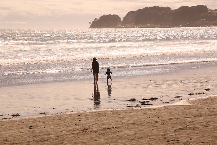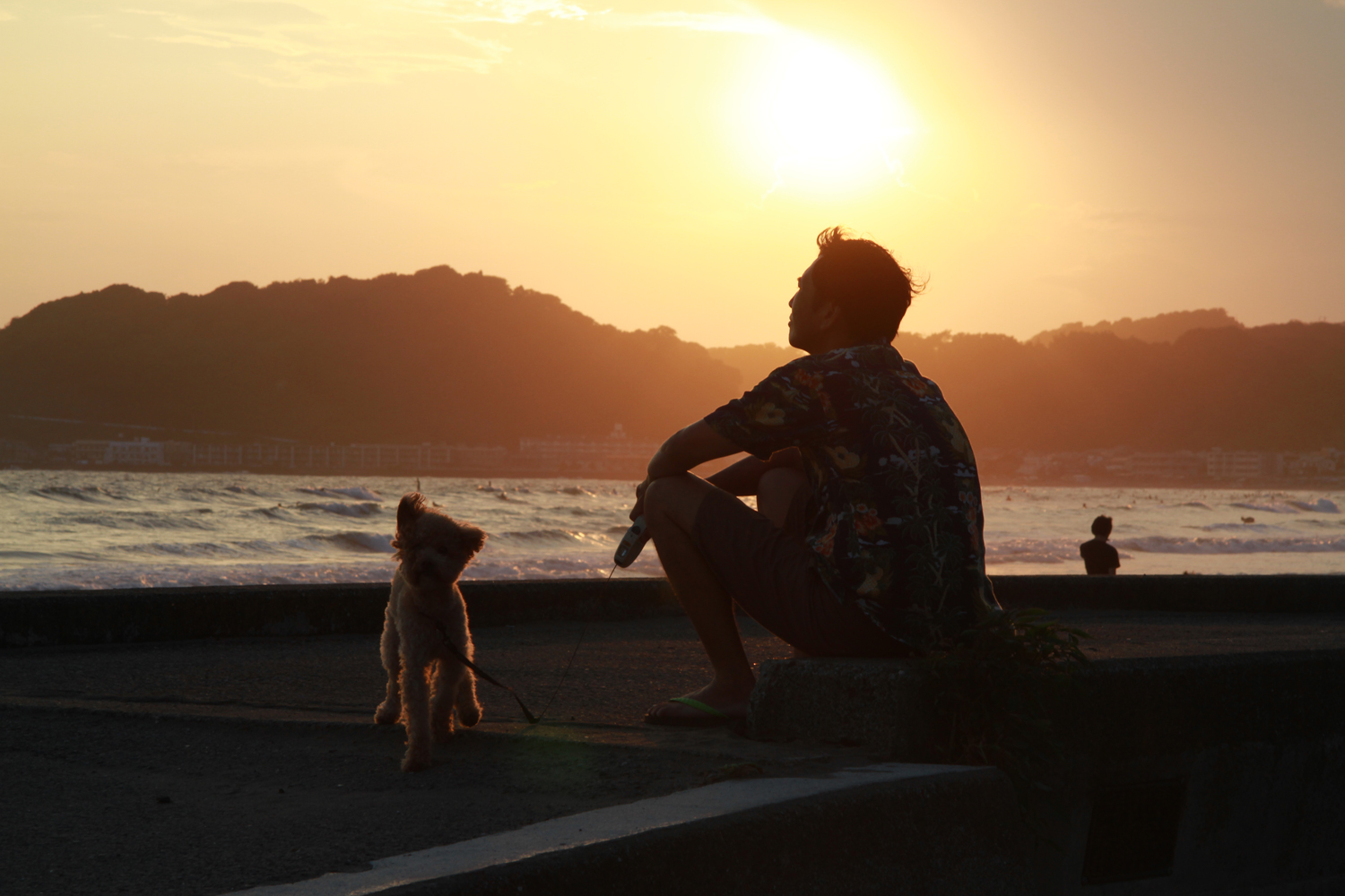 その時間帯から観光客が少なくなる鎌倉のビーチにも地域の人たちが戻ってきます。子どもを連れたママや犬の散歩に来た人、サーファーたち。比較的観光客が少ない材木座海岸に「暮らす人々の夕暮れ」といった穏やかな空気が流れます。