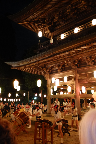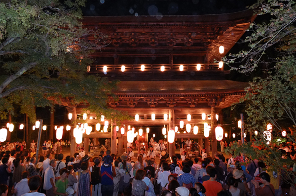なかでも円覚寺の盆踊り大会は、あの格式高き山門のまわりを踊りながら回る、なんともダイナミックでありがた〜いもの。参道から園児の作ったぼんぼりが飾られ、山門に向けて提灯が並び人々を迎えます。炭坑節や相馬盆唄、東京音頭など盆踊りのスタンダードな楽曲が流れ、踊りを先導するのは盆踊りの会の人々。おそろいの浴衣で息もぴったりの踊りは、無理をしていないのだけど、とても粋でかっこいい。これに高齢者から子どもまで浴衣を着た人たちが続き、さらに様々な人が参加して山門を2重3重に囲んでゆったりと踊りの輪が広がっています。くじ引き(地域の人に交じって普段ストイックに過ごしてる円覚寺のお坊さんたちが手伝ってたりします)や和太鼓の演奏もあって、手作り感やフレンドリー感とともに、鎌倉の「粋」がひとしおです。