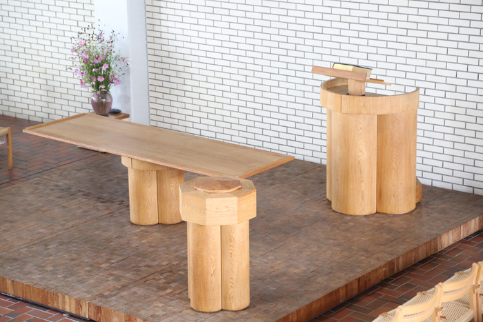 その一角が区切られて、ちいさくてかわいい子ども用の机といす、おもちゃが置かれています。日曜日の教会学校の幼稚科で使われるのだそう。月1回開かれる「つぼみの会」は信徒であるなしにかかわらず参加できる親子向けの集まりで、その際には机や椅子は移動し、広いスペースを親子の場所として使っているそうです。大人向けにも誰でも参加できるバイブルカフェなどがあり、オープンで多様なサロン的集いからも、信徒や牧師から感じられる気取らないおだやかな様子からも、地域や多世代の交流をとても大切にされた、人々が集い祝福に満ちた居場所であるのを感じました。