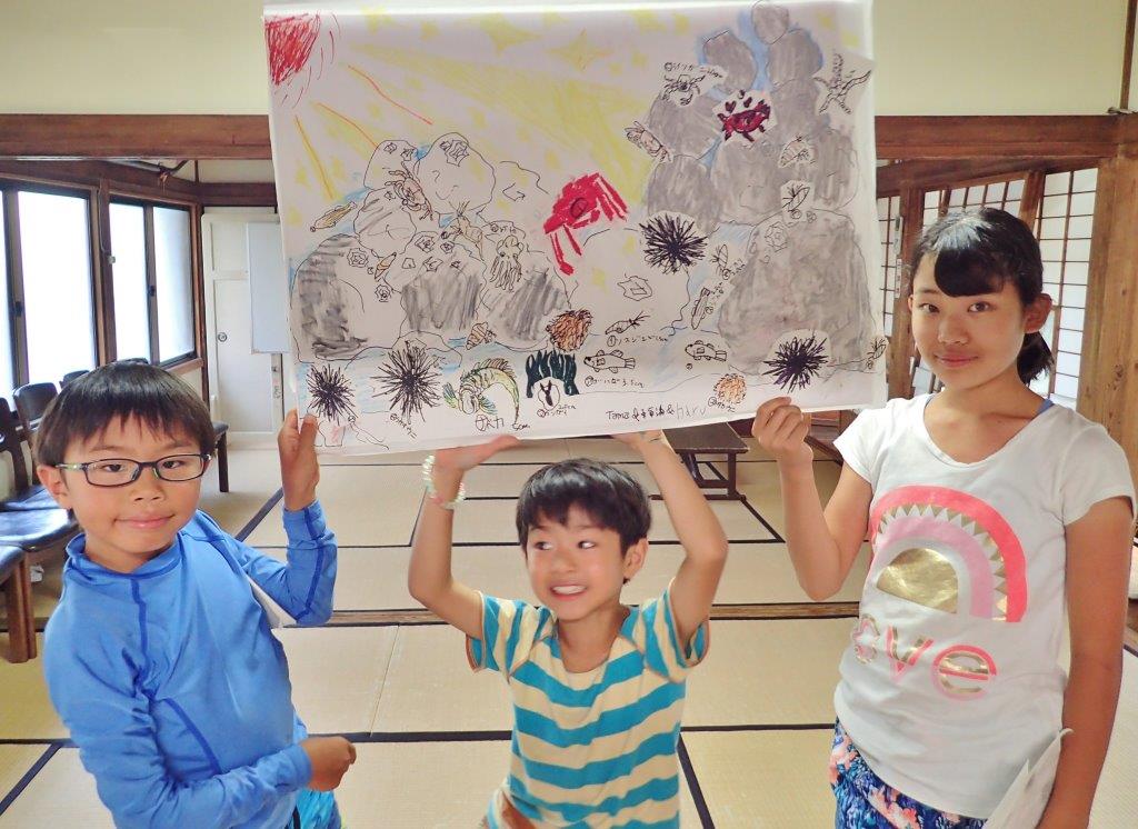 この日の最後は、それぞれが表現した磯の生き物マップを他のグループの子や保護者へ伝える時間。発見と感動に彩られた、それぞれの体験をそのポスターを通して、みな誇らしく伝える事ができたようだ。