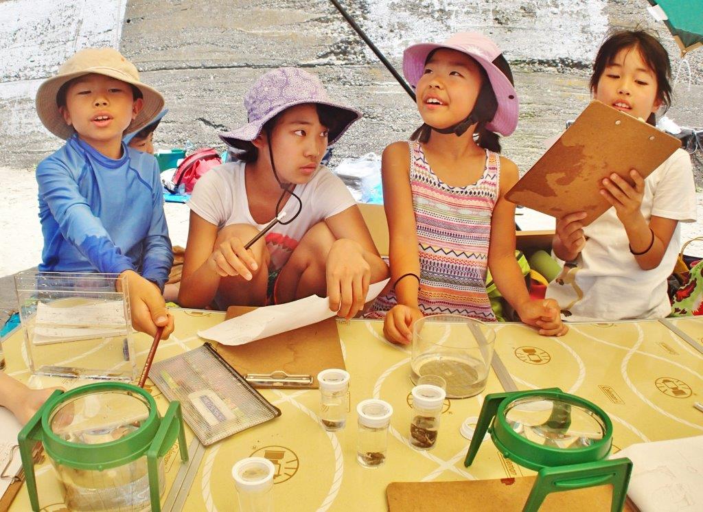 じっくり観てみる多くのキッズミュージアムが室内の体験プログラムなのに対して、地球の楽校のワークショップは、川や海といった自然の中が体験の場。そこで生き物をゲットするだけでなく、貴重な生き物との出会いを形にしていく過程を大事にしているのだ。水辺の生き物と環境という刺激的な素材が、考える力を引出し、出てきた言葉やイメージを人に伝える手段にする。自然の理解と成長支援とアートが融合したユニークなワークショップでした。