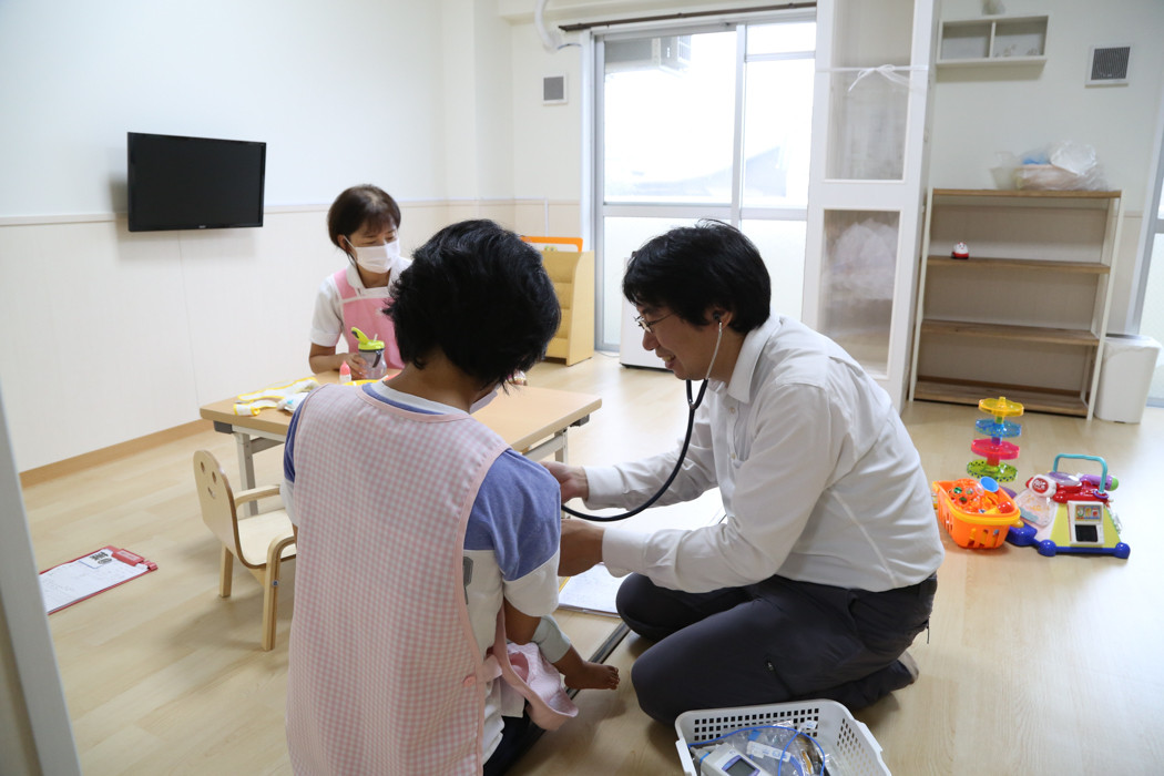 取材時では保育士と看護師が見守る中、数名のお子さんがおだやかに過ごしていました。施設には遊んだり、食事をする部屋や安静室、簡易キッチンなどがあります。一見、普通の保育スペースですが、消毒剤と強力そうな空気清浄機が目につきます。お昼過ぎには軽やかな足取りでドクターが現れ、子どもたちの健康状態をチェックしていかれます。