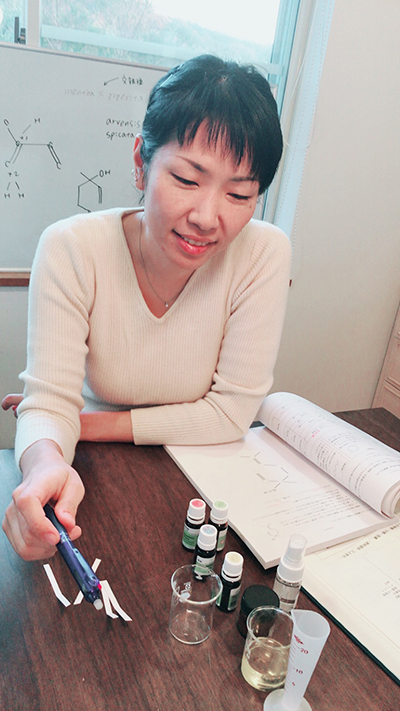 主宰の光成佳世さんは二児の母。ご主人の仕事の関係で海外での出産、子育てを経験し、その想像以上の大変さから日本にいた時以上に家族の健康について考えるようになったそうです。そんな中、アロマテラピーと出会い、メディカルアロマとして深く学び始め、その効力を実感し、今度は家族だけでなくより多くの方に、とりわけ自分のことを後回しにしがちなママたちを応援したいという熱い思いで、2010年から自宅の1階部分にサロンを立ち上げました。サロンのお部屋は漆喰の壁に無垢の床。リネンは粉石けんか炭酸塩で洗濯し、アロマテラピーに使用する精油や植物油は全てオーガニックなど光成さんのこだわりがうかがえます。