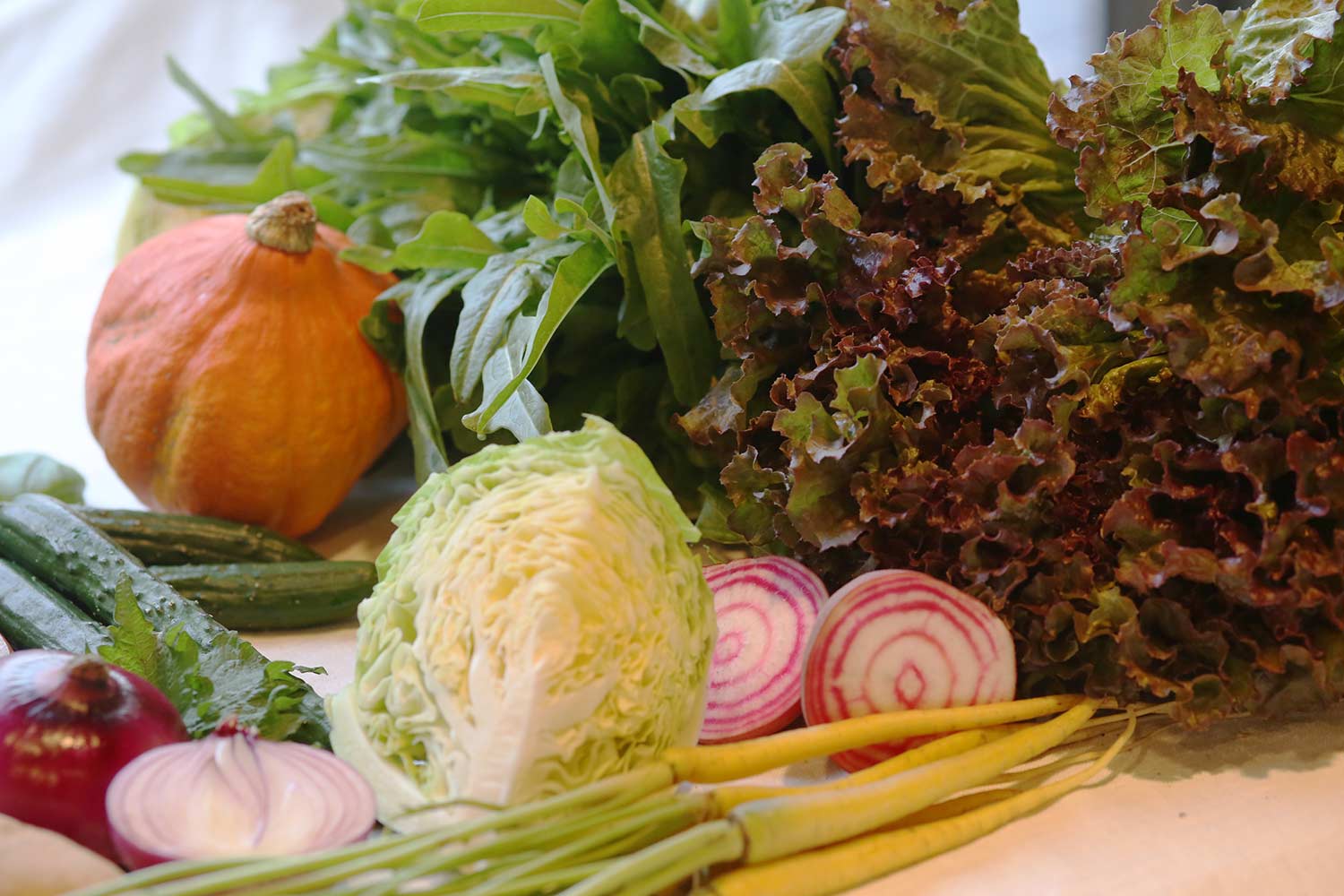 数種の葉物や根菜を束にした「ミックス」を出す農家もあるの。一般家庭でも食べきれる量で、いろんな種類が取れて、料理の手間も省けるありがたい商品ね。