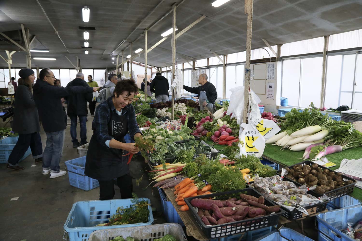 - 地元の人、レストランのシェフ、観光客など、誰でも鎌倉野菜が買える。