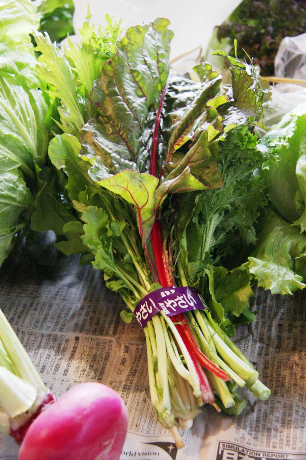数種の葉物や根菜を束にした「ミックス」を出す農家もあるの。一般家庭でも食べきれる量で、いろんな種類が取れて、料理の手間も省けるありがたい商品ね。